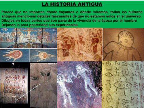 Hemos compartido fotos como evidencia de los hechos históricos que quedaron gravados en rocas, pintados en cuevas, de la presencia en las culturas antiguas que seres de otros mundos han visitado la Tierra entregando a los hombres mensajes de redención y amonestación, de allí el concepto o conocimiento acerca del Creador, porque en esas culturas manifiestan la existencia de un Padre Creador Espíritu Omnipotente, Omnisapiente, Omnipresente, y Omnisciente, refiriéndose al Dios Todo Poderoso, que Él es el todo, que en Él están todas las cosas creadas e increadas, nada existe fuera de Él y así también, Él esta y es parte de todas las cosas. En las culturas antiguas dicen que: