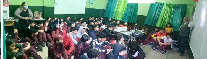 El salón relativamente amplio se llenó de alumnos, para que luego el Director Dr. Prof. Sergio Arnaldo Huber nos diera la bienvenida, y manifestara a sus alumnos poner la máxima atención a la charla que es muy importante por el contenido y los conceptos que se compartirán, porque después les solicitare realizar un trabajo sobre la charla.