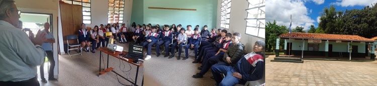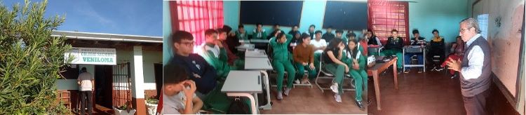 El dia 10 de abril del 2026, Adriana, Gladys, Jorge y Omar, viajamos hacia la ciudad de Carapegua, distante de la capital unos 80 km, visitando algunos colegios ubicados en el campo distante del centro de la ciudad a unos 15 km. En la mañana llegamos al Colegio Nacional Veniloma, donde nos recibe amablemente el Director, Alberto, quien nos dirige a la sala donde se daría la charla, donde preparamos nuestro equipo mientras los alumnos del 1er, 2do y 3er curso se ibas acomodando.