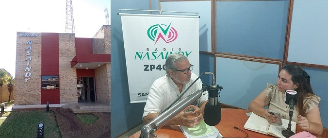 Llegados a la ciudad nos dirigimos a la primera Radio, Ybyturuzu, donde encontramos a la periodista Liz Vera quien nos recibe y nos pone al micrófono y nos deja hablar el tiempo necesario.