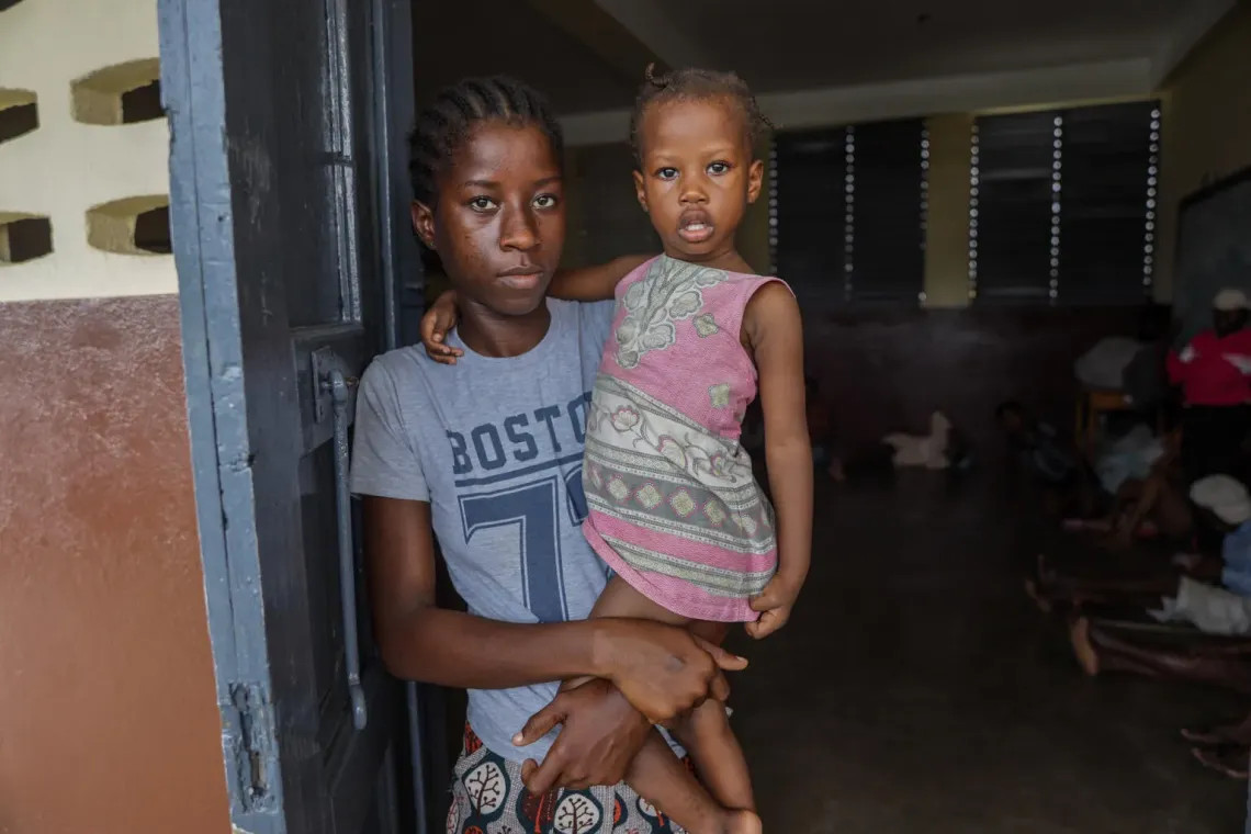 Foto: - UNICEF/UNI893258/Noel Una madre carga a su hija en una escuela que ha sido convertida en un refugio después de que su casa en Haití fuese destruida durante el Huracán Melissa -