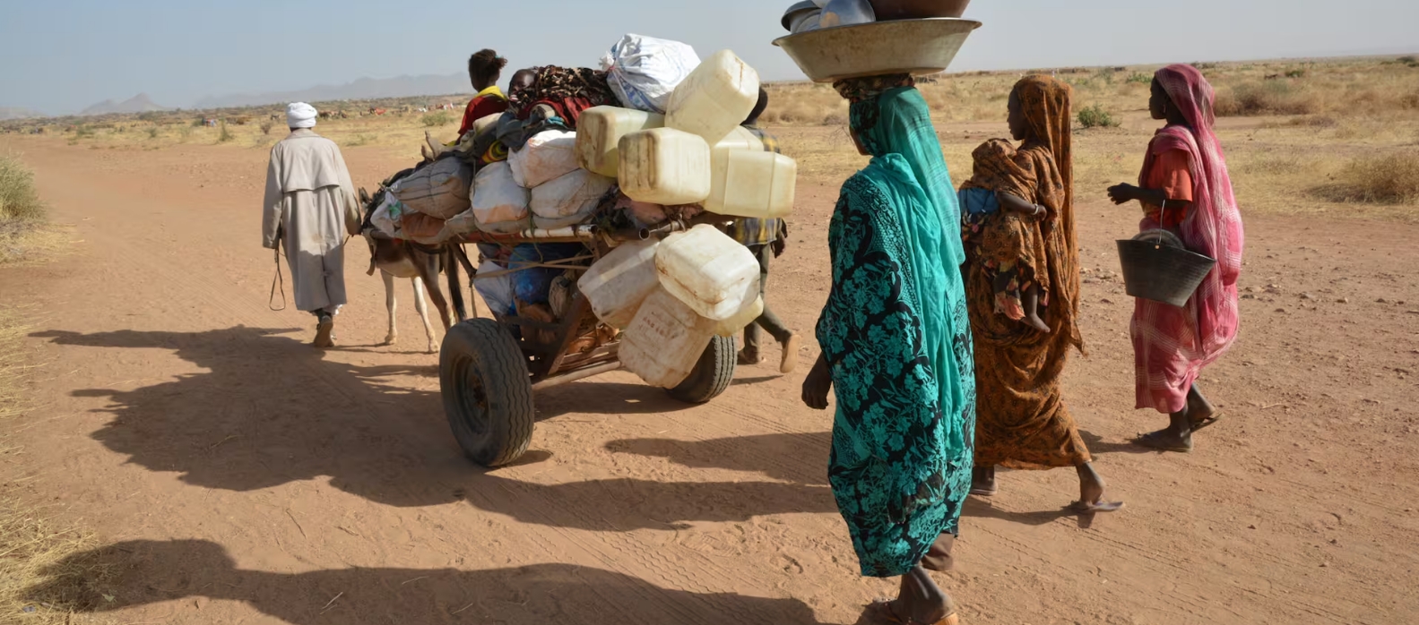 Asediados, atacados y hambrientos, una familia transporta sus pertenencias mientras se ve obligada a desplazarse debido al conflicto en curso en los alrededores de Tawila, DarfurJérôme Tubiana - MSF