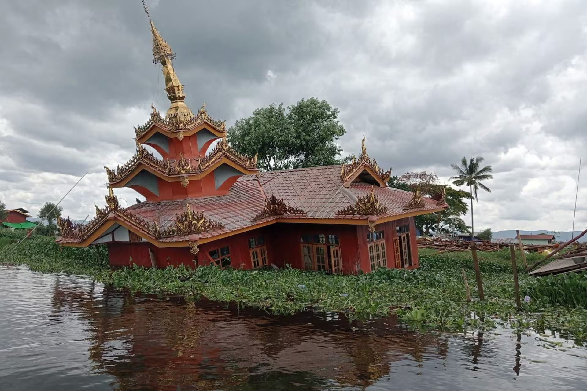 Un monasterio construido sobre pilotes en el lago Inle se derrumbó tras el terremoto de magnitud 7,7 ocurrido el 28 de marzo en el estado de ShanNicolas Schreiner - MSF